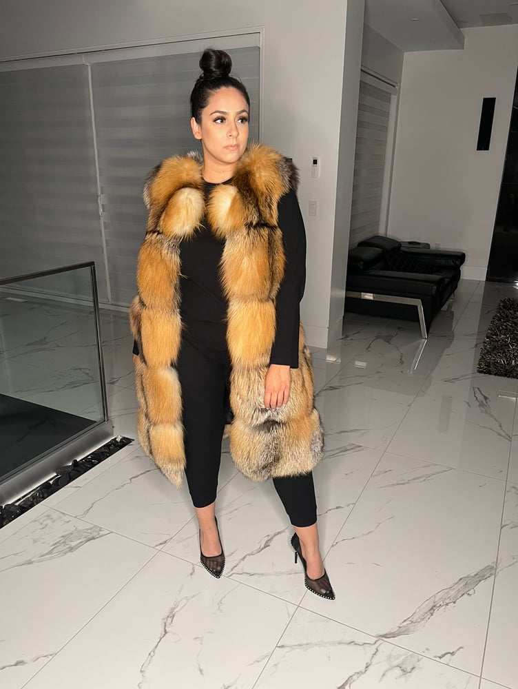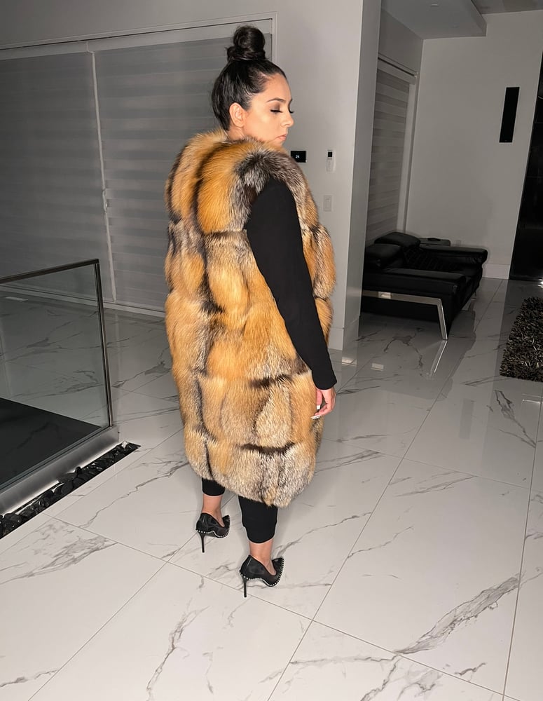 Genuine fox fur vest featuring large sections and detectable waist (after 3rd section). Sleeves and a hood can be added for an additional fee.